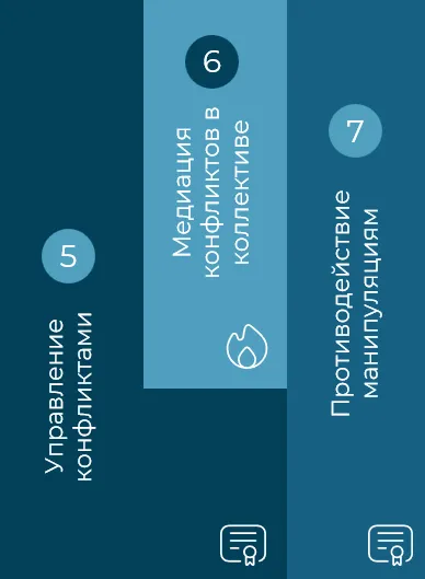 - основной эффект от тренинга: Повышение результативности и эффективности разрешения сложных конфликтов в организации за счет внутренней способности руководства